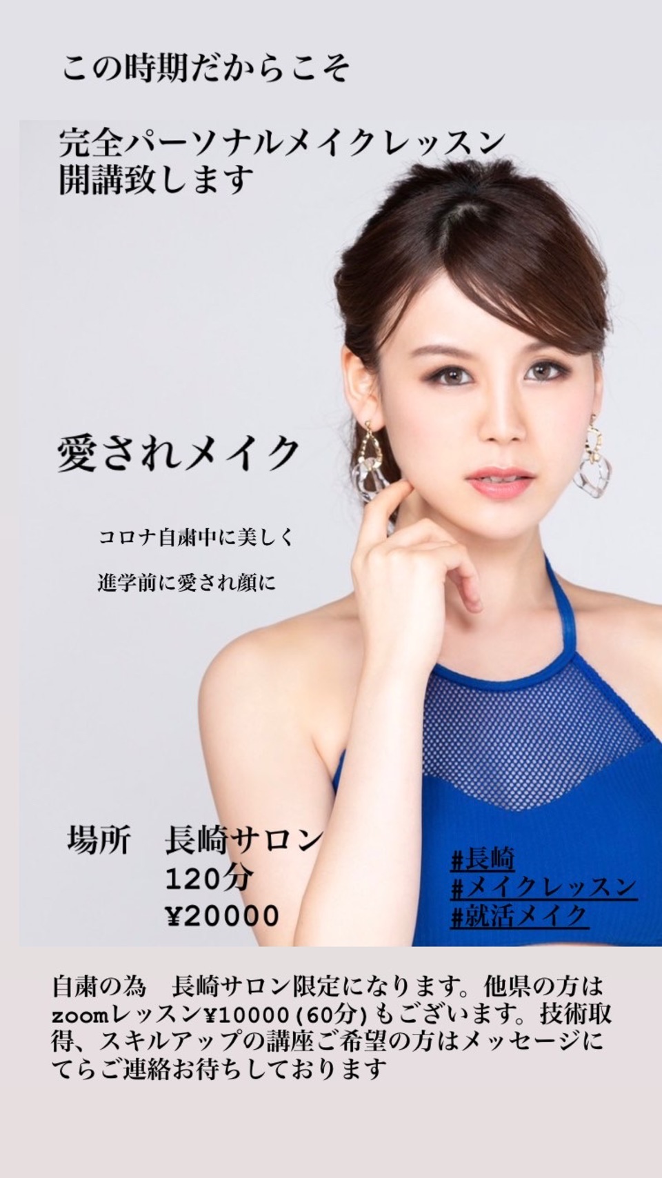 自分自身にあったメイクがわからない方、自分にあう色や形がわからない、店舗でも出張でもご要望に合わせた対応いたします。プロの技術を日々の生活に取り込める人気講座です。